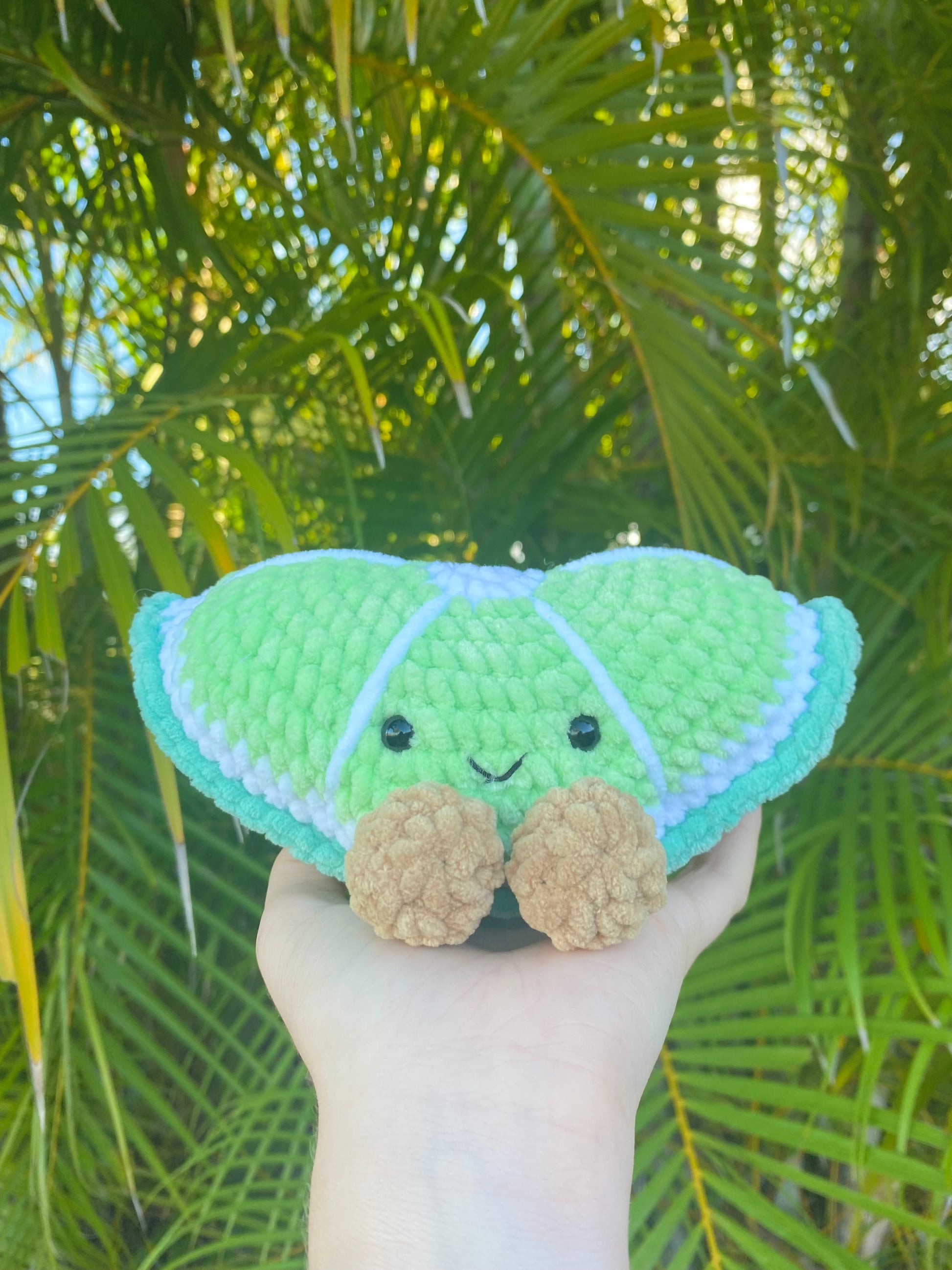 Meet the Lime Slice plushie, a delightful crochet creation that adds a pop of color and comfort to your space. Its soft texture makes it perfect for cuddling or as a playful decor piece. Bring a cheerful vibe into your home with this charming companion!